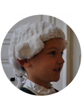 Petits marquis et grands rois seront parfaitement coiffés avec cette belle perruque XVIIIe ! En fourrure toute douce, imitant les cheveux, lavable et adaptable à toutes les têtes enfantines grâce à son élastique.